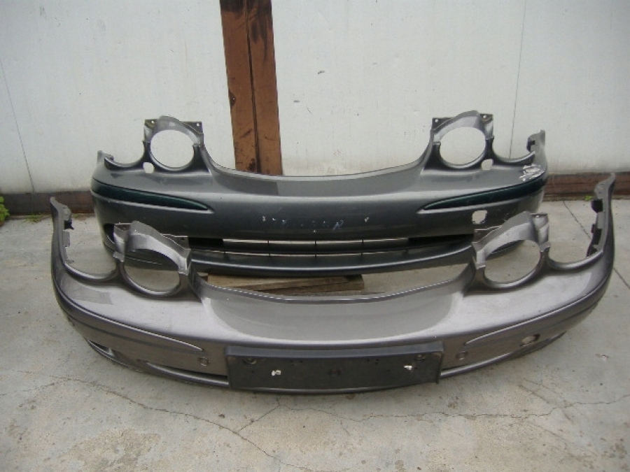 zderzak przedni do Jaguara X-Type diesel bez PDC na spryskiwacze bez PDC widoczny u góry na zdjęciu. Na innej aukcji zderzak z PDC bez spryskiwaczy, na dole na zdjęciu w cenie 600zł