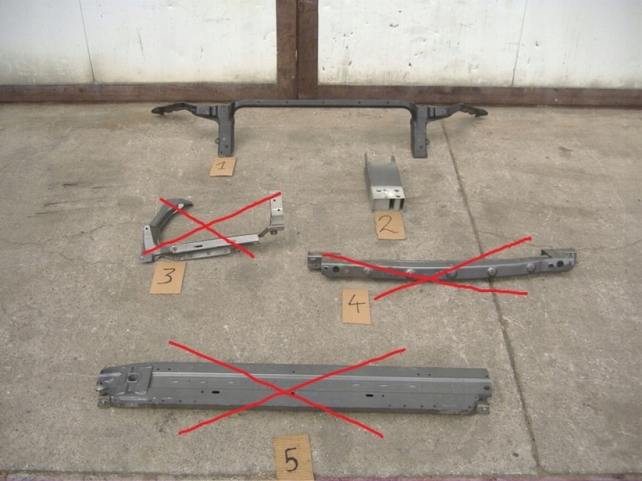 Strefa zgniotu prawa nr2 na zdjęciu do Jaguara F-Pace X761 po 2015 roku. Na innej aukcji wzmocnienie górne nr1 o numerze HK83-16E144-A - 1300zł, belki zderzaka nr4 i nr5 na zdjęciu oraz okulara nr3 brak