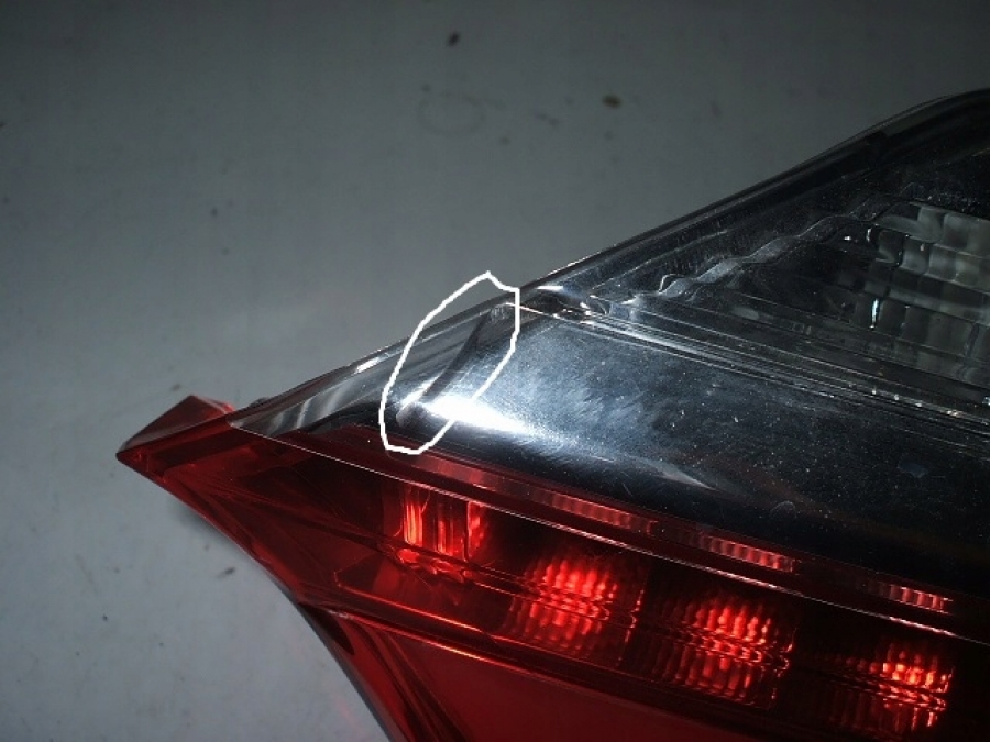 Lampa tylna prawa w klapę o numerze 81580-02A30 do Toyoty Corolli E16. Lampa delikatnie pęknięta, pokazane na 2 zdjęciu