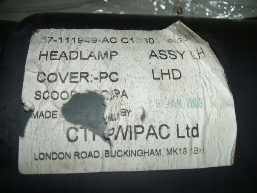 Lampa lewa do Aston Martin DB7 . Wersja do ruchu prawostronnego, kierownica po lewej stronie, nie angielska !!!