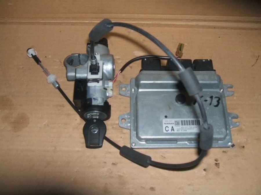 komputer silnika o numerach A56-E37 T58OY24 oraz stacyjka z kluczykiem do Nissana Micry K13.