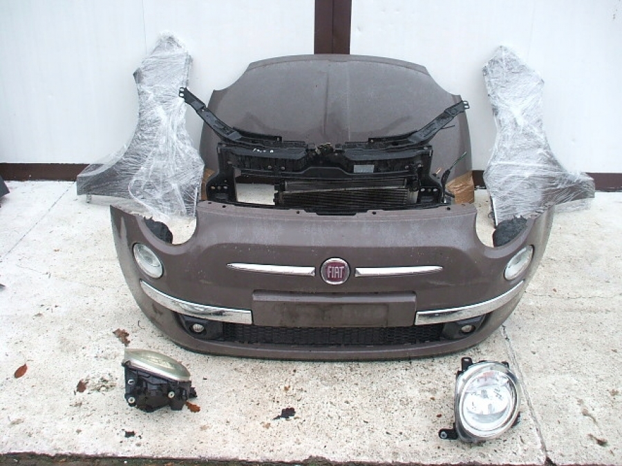 Części przodu w kolorze 703/A Grigio Galante VRB/8 (maska, zderzak , błotnik lewy i prawy, lampy lewa i prawa , komplet chłodnic, wzmocnienie czołowe ) do Fiata 500 1.3 multijet . Reflektory europejskie, nie angielskie.