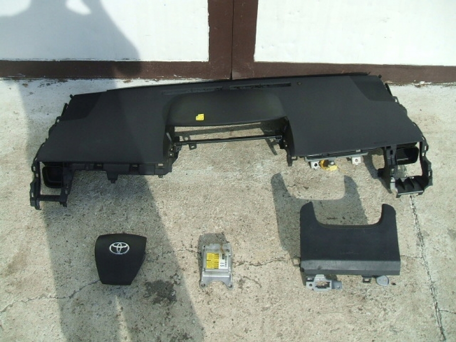 Deska rozdzielcza bez osprzętu, poduszka kierowcy, poduszka pasażera, kolanowa oraz sensor do Toyoty Prius Plus.