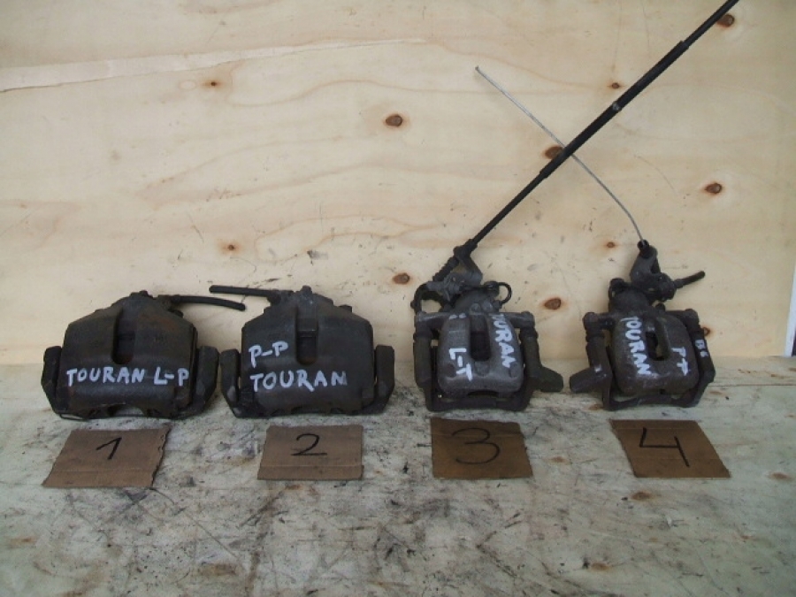 Zacisk hamulcowy w dobrym stanie lewy tylny nr3 lub prawy tylny nr4 na zdjęciu lub lewy przedni nr1 lub prawy przedni nr2 do VW Passata B6, Tourana, Golfa V Skody , Seata itp . Przednie zaciski firmy ATE, tylne TRW. Cena za 1szt !!!