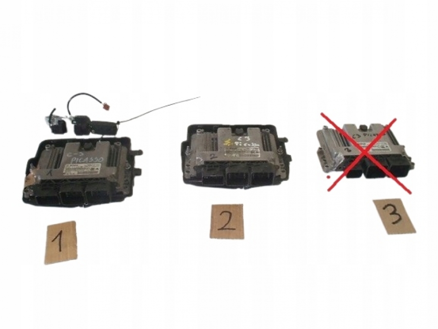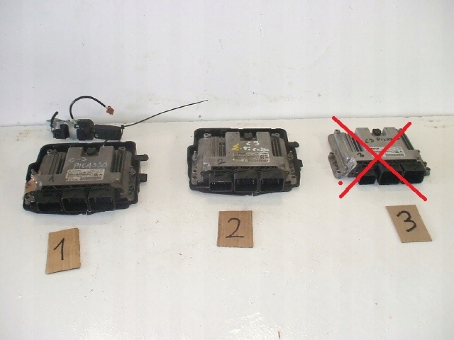 sterownik silnika nr1 na zdjęciu o numerach 0281019819 i 9805947680 oraz stacyjka z kluczykiem do Citroena C3 Picasso 1.6hdi. Na innej aukcji komputer nr2 o numerach 0281017333 , 9677013180 w cenie 95zł, (Komputera nr.3 na zdjęciu brak!!!)