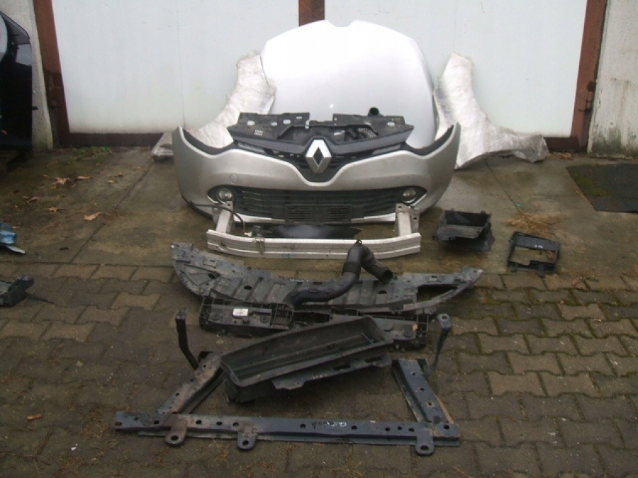 Części przodu w kolorze srebrnym (maska, zderzak, błotnik prawy, lampy , komplet chłodnic, wzmocnienie czołowe, atrapa ) do Clio IV 1,5dci przed liftingiem.