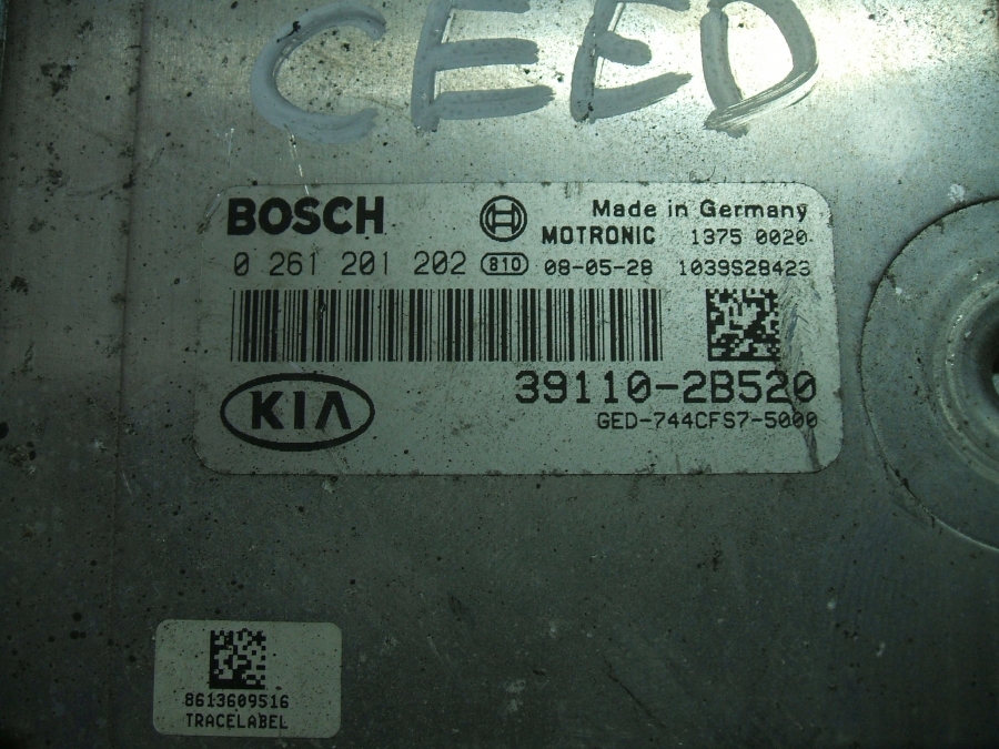 sterownik silnika firmy Bosch o numerach 39110-2B520 , 0261201202 do Kii Ceed i Hyundaia I30 1.4 i 1.6 benzyna z rocznika 2007-2012